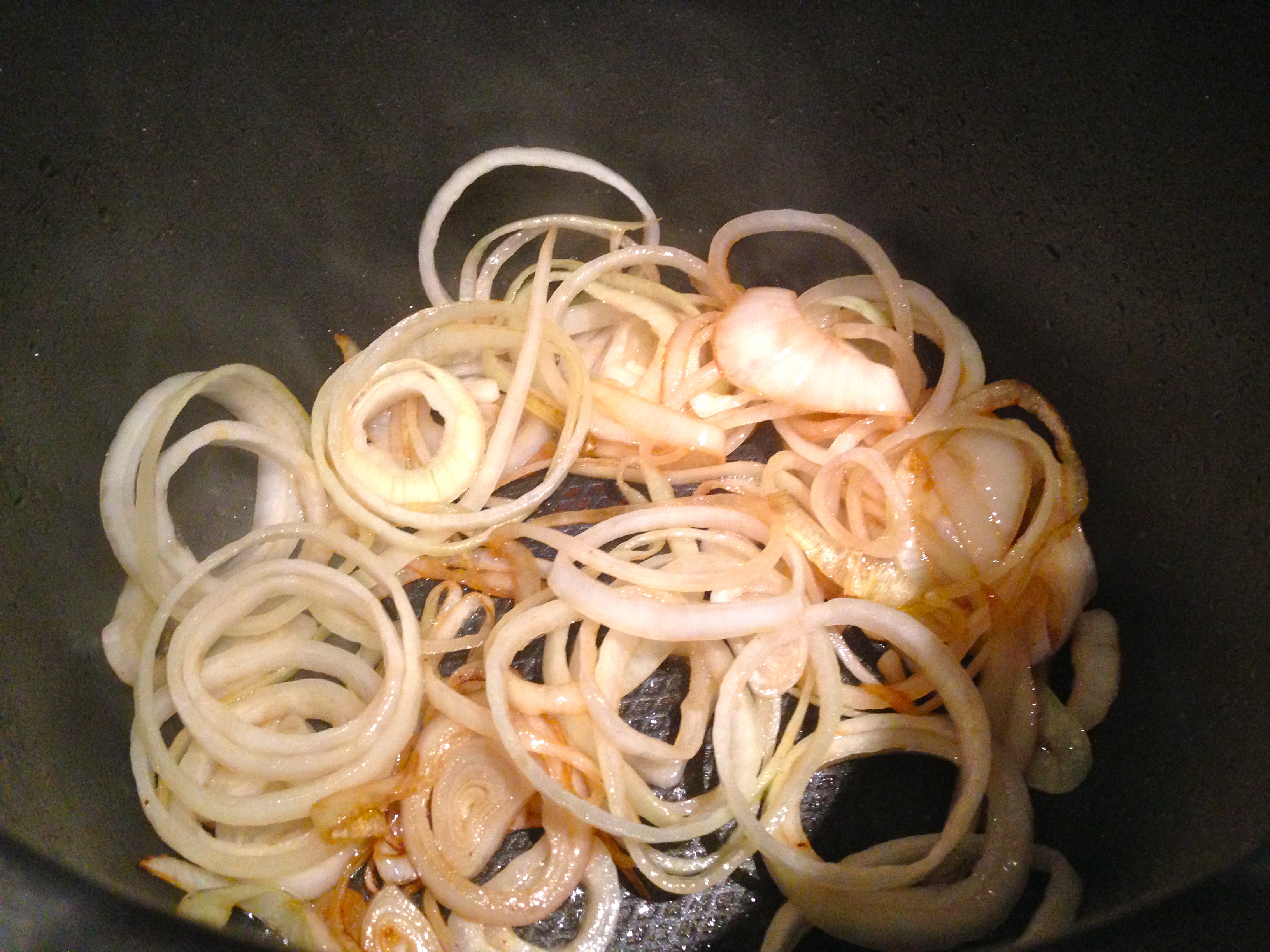 Now cook the sliced onions in any leftover juices from the meat for about 3 minutes, until softened.