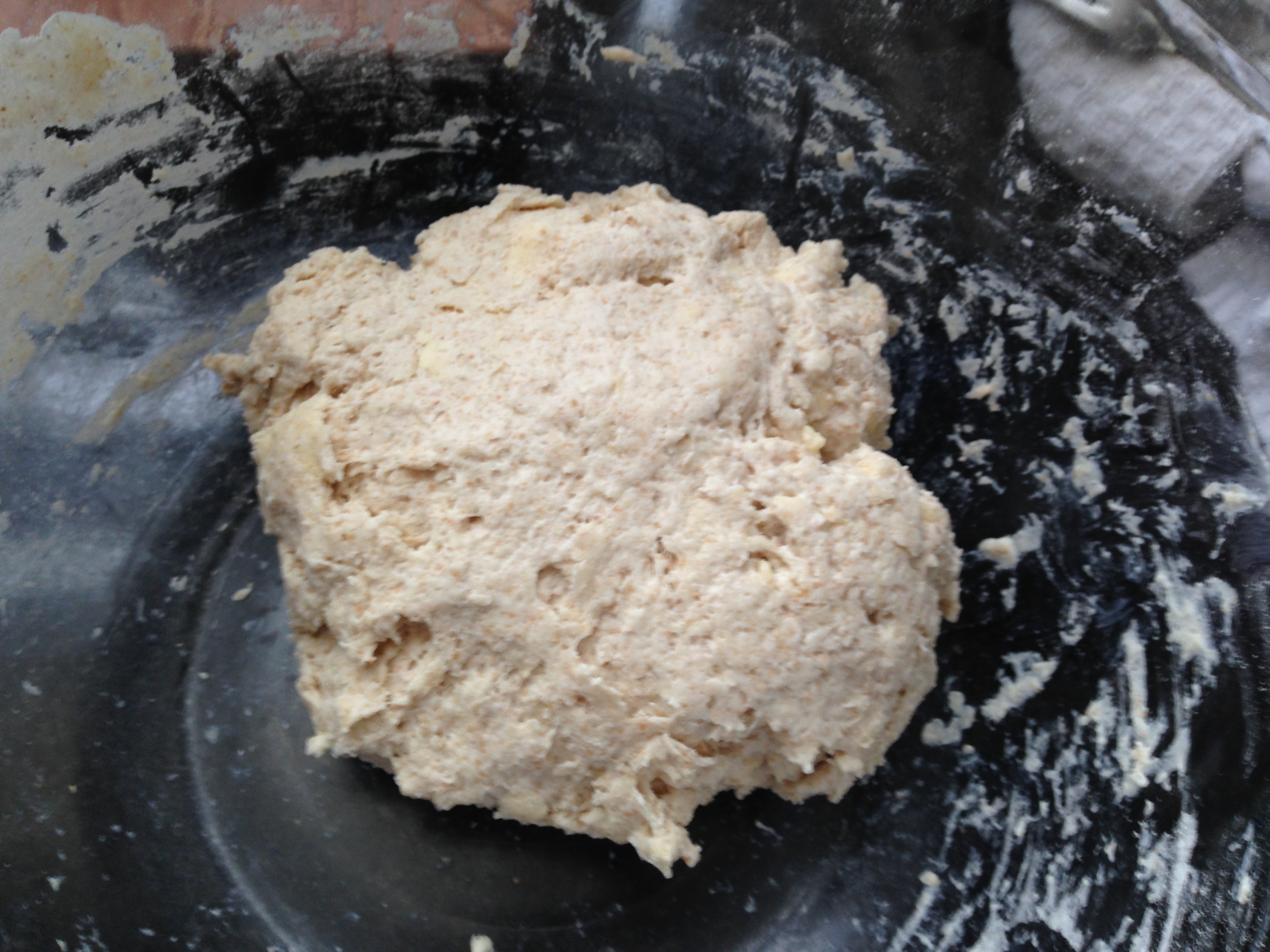 Then add butter and incorporate with either a pastry cutter or two knives. I used knives because I don’t have a pastry cutter.