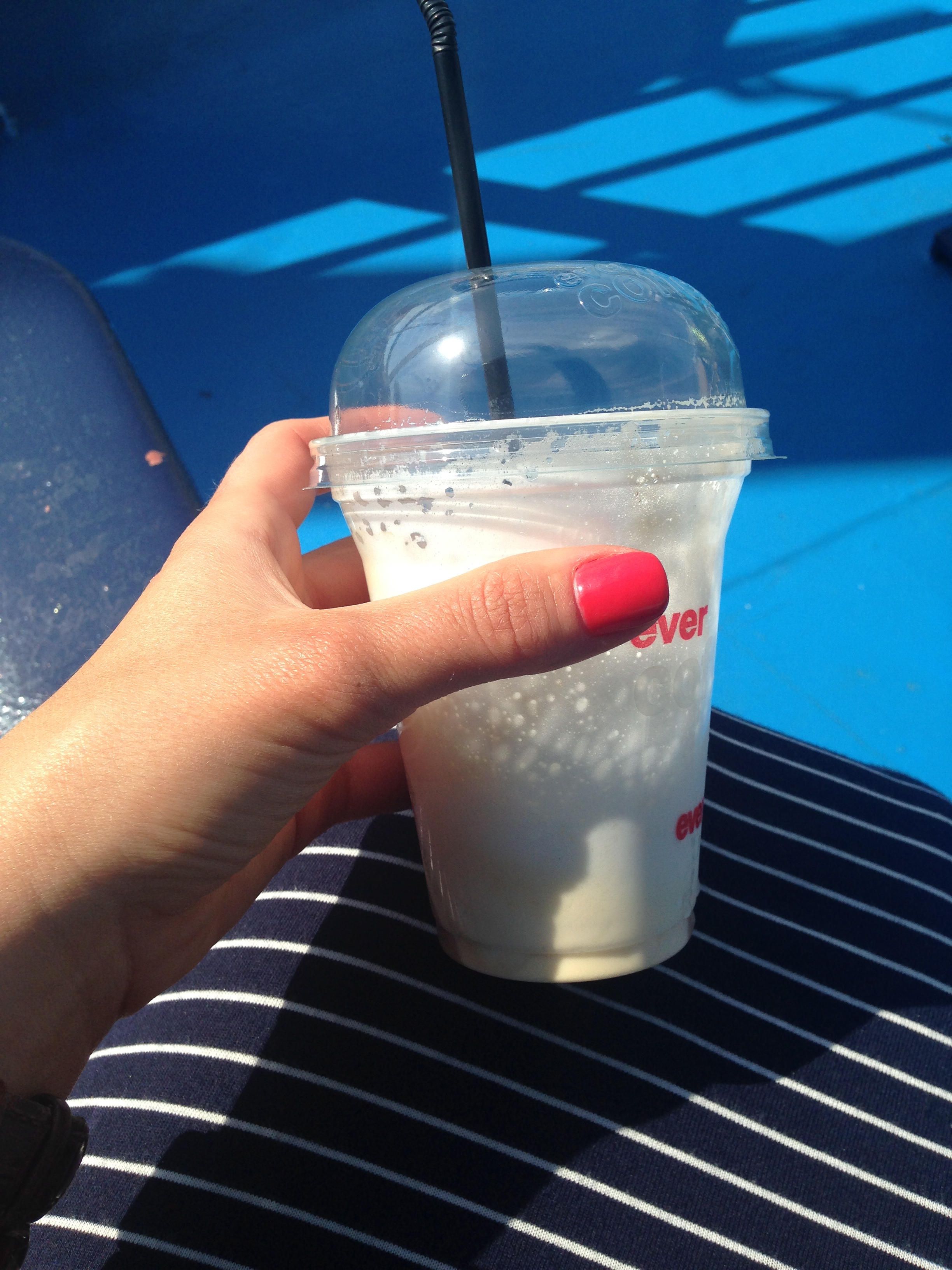 I stopped drinking regular coffee for health reasons,  but I made an exception while in Greece. My go-to coffee drink was a Cappuccino Freddo–the cold version of a cappuccino. This one I had on the ferry I swear was the best of the whole trip!