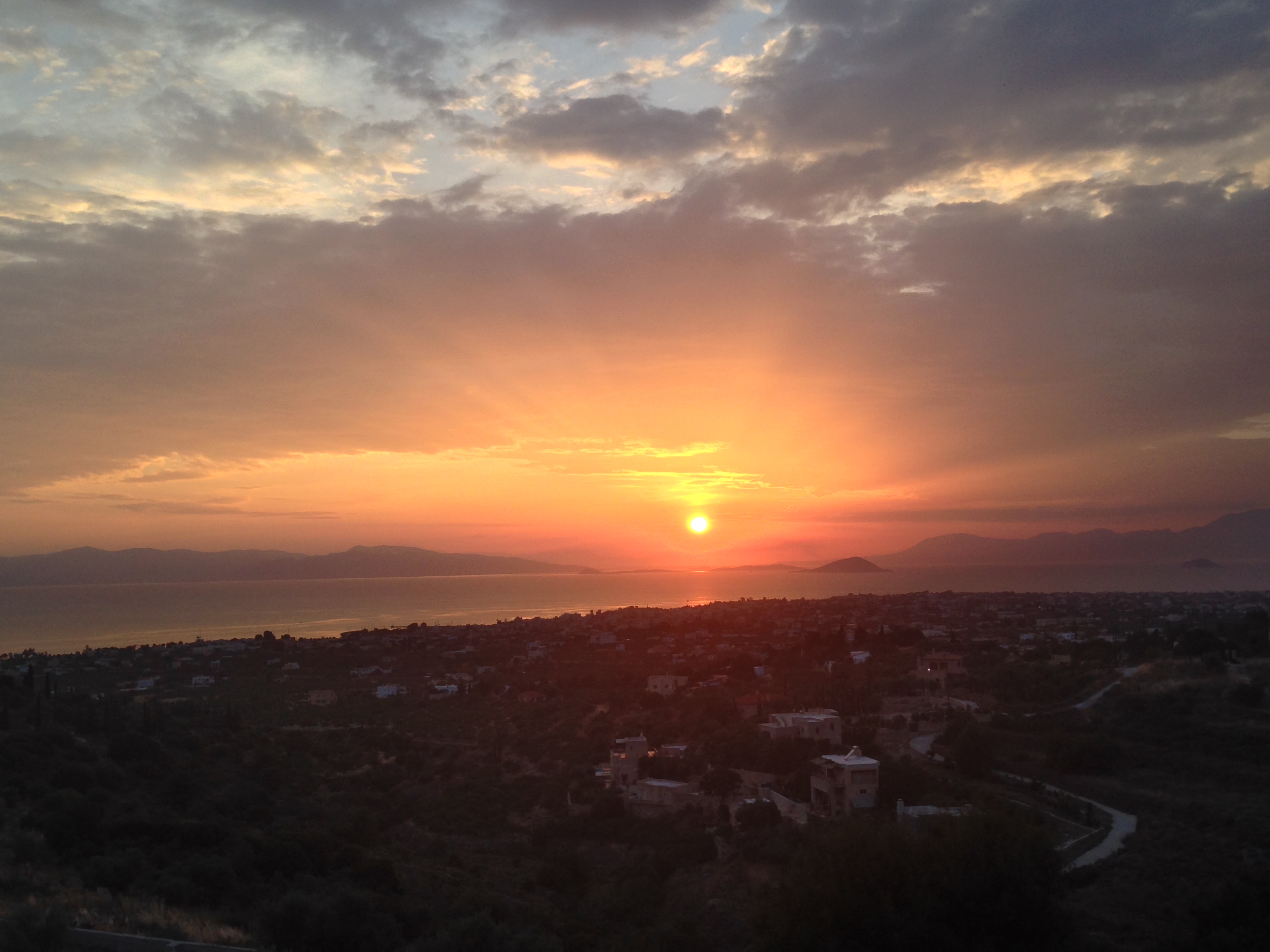 John Paul and I were both in his brother’s wedding in the beautiful island of Aegina, just a short ferry ride from Piraeus. After a nine hour flight from Charlotte to Munich with a short connection,  a 2 1/2 hour flight to Athens, and just over an hour ferry ride to Aegina, we finally made it just in time for a quick shower before the rehearsal dinner at 9:00 p.m.!
